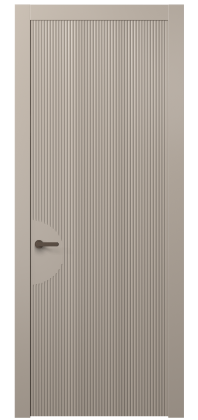 Dune — коллекция дверей украшена частой прямой фрезеровкой, которая напоминает волны дюн в пустыне. Созданная на поверхности полотна текстура привлекает взгляд и добавляет глубину пространству. Двери Dune — это сочетание современного дизайна и вдохновения живописными природными ландшафтами.