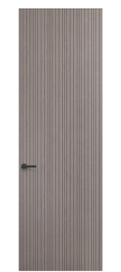 Селект — коллекция минималистичных дверей с фрезеровкой по натуральному шпону. Рельеф на поверхности полотна создаёт игру света и тени, добавляя пространству динамичности и визуального объёма. Двери Селект в сочетании со стеновыми панелями и мебельными фасадами, повторяющими лаконичный дизайн, создают единое стилевое решение.