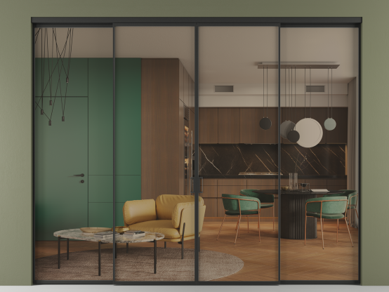 Алюминиевые перегородки Formato — это стильное и функциональное решение для современных интерьеров, предназначенное для разделения и зонирования пространства внутри одного помещения. Перегородки изготавливаются под индивидуальные размеры с шагом в 1 мм, что даёт возможность подобрать оптимальное соотношение размеров и количества створок, в том числе и для нестандартных проёмов.